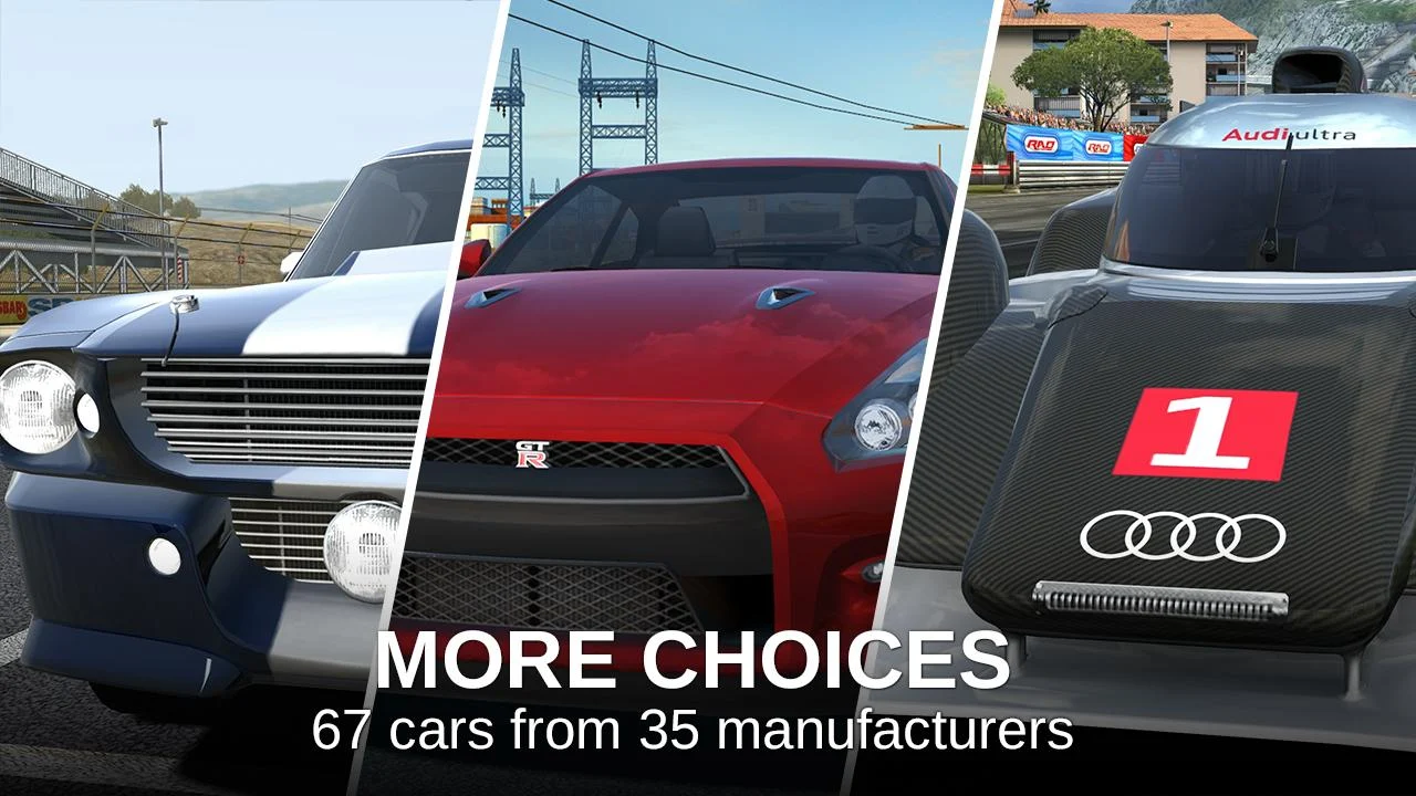 • A superb collection of real cars from over 30 manufacturers: Mercedes-Benz, Ferrari, Dodge, Nissan, Audi, Ford, and more.